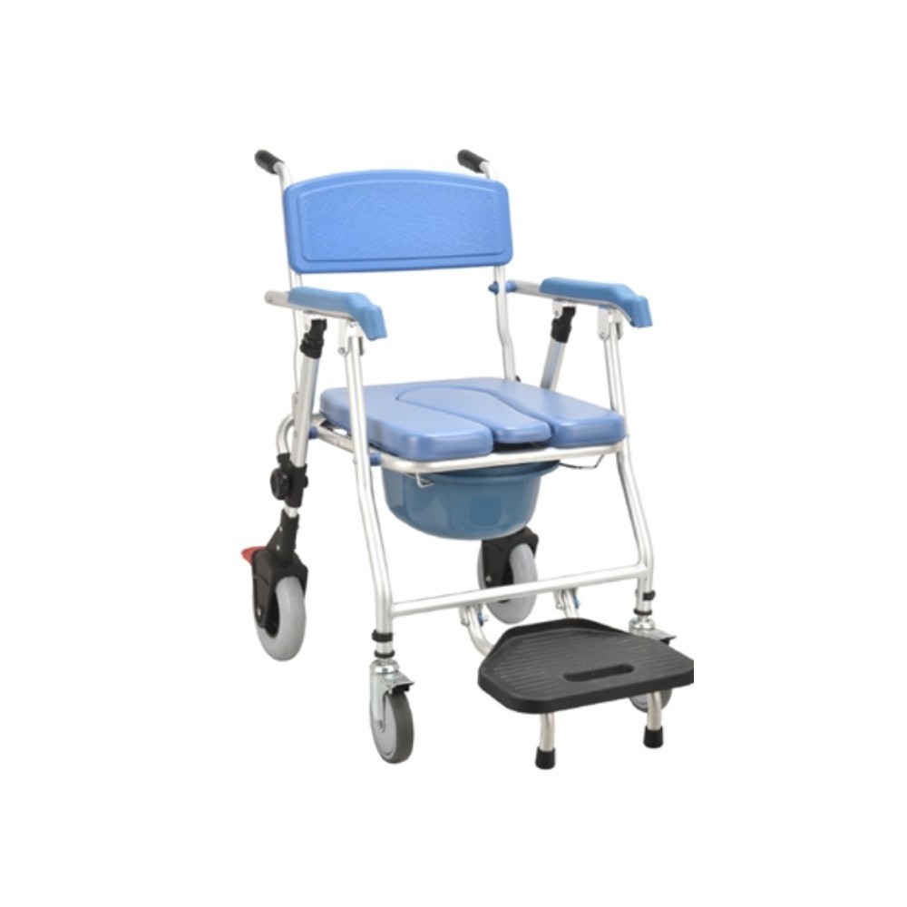 - Encosto plástico azul com pega de acompanhante;