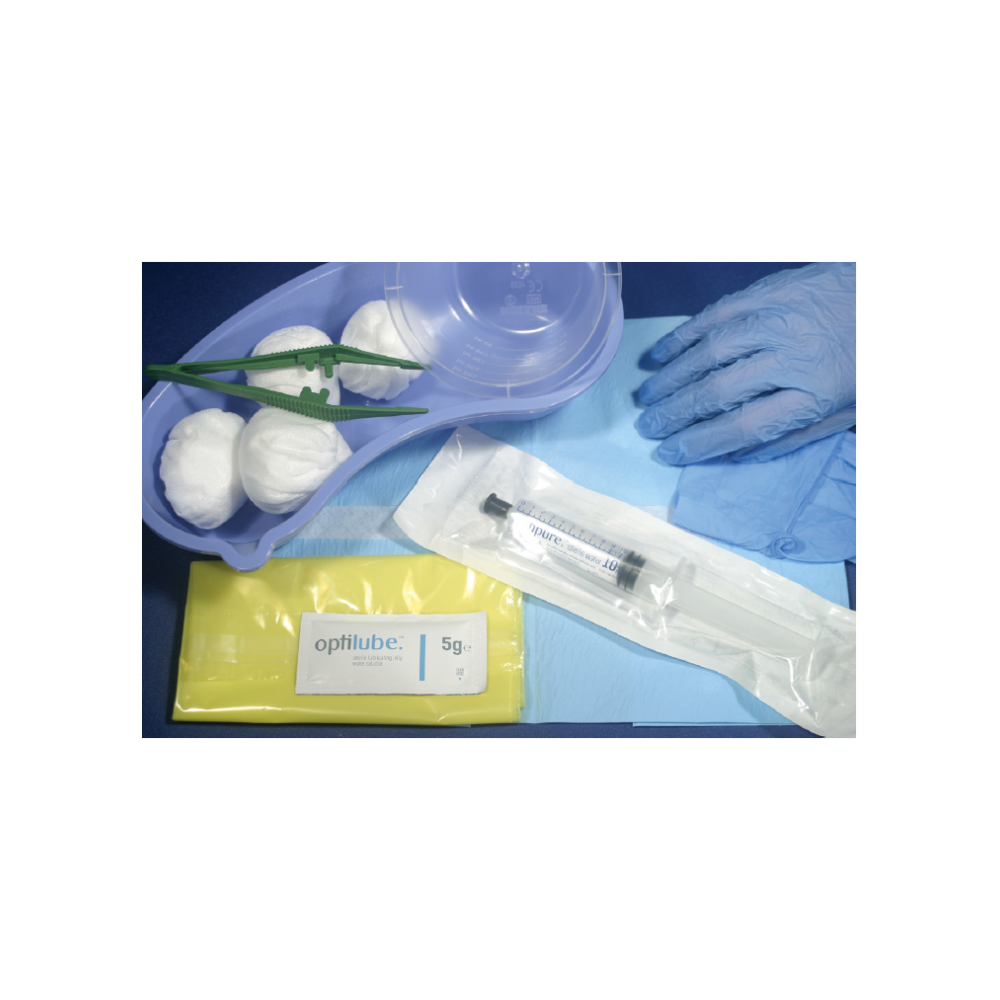 - Para além de todos os componentes de suporte ao procedimento, embalados e esterilizados contém ainda uma seringa com água destilada e uma embalagem de gel lubrificante.